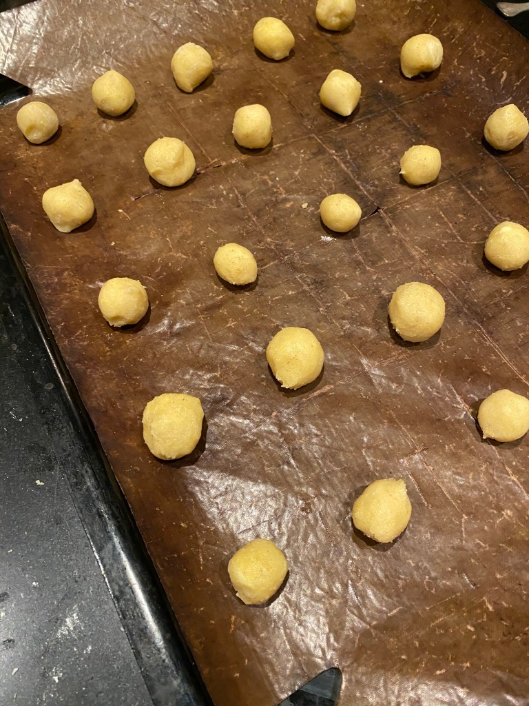 • Trill kuler av bitene og legg på brett dekket med bakepapir.