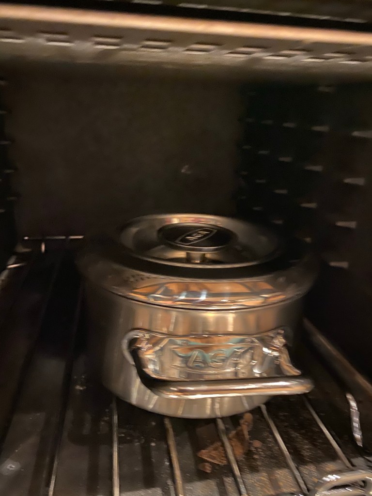 På AGA: når risen fosskoker flytter du den vekk fra platetoppen og inn i baking oven. Der lar du den stå til den er ferdig, i underkant av 20 min. Alt vannet skal fordampe.